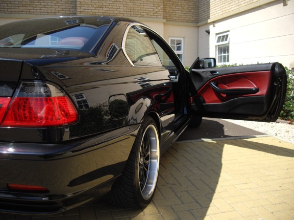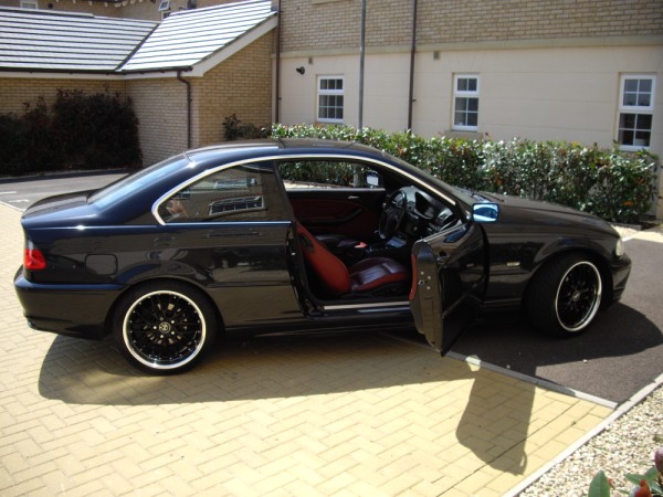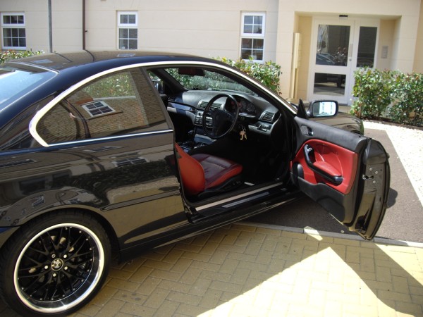 BMW E46 323CI (W reg, 2000) Black, rare red leather interior, 18" deep dish alloys, facelift LED rear lights, black kidney grills, Induction kit, carbon black BMW badges all round, 137,000 miles, tax till next feb 2015 and mot'd till feb 2015. This car has been my pride and joy for the last 5 years and I am only selling as im upgrading to the m3.