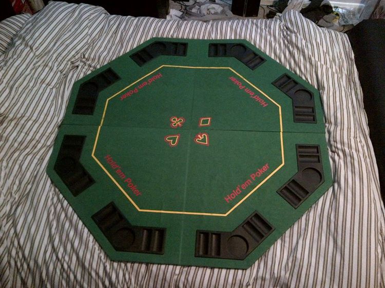 Fold out poker table seats up to 9 also has groves to put drinks and chips in used Twice in very good condition