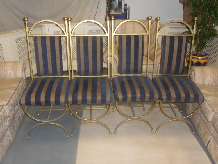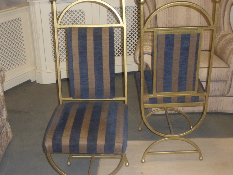 4 wrought iron dining chairs with padded seat and back,these chairs have hardly ever been used and are in very good condition