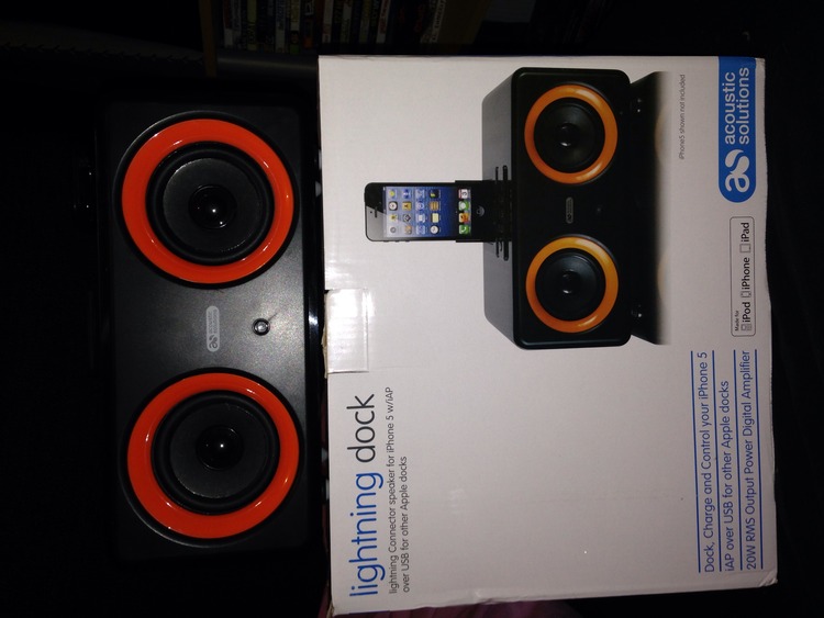 Here i have i phone 5 docking station called the lightning dock cery loud has usb conection and remote and looks good still new with box £80 ono