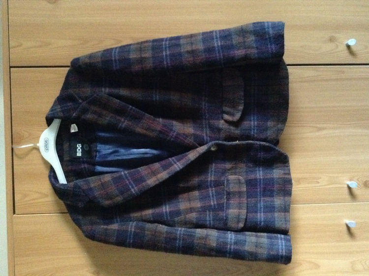 Brown with blue check cropped jacket from Urban Outfitters. Worn twice and in great condition. Blue lining
