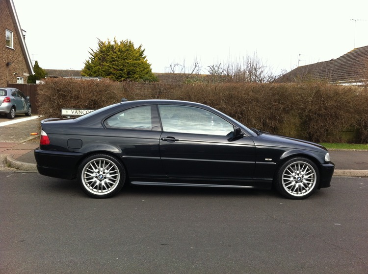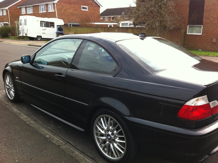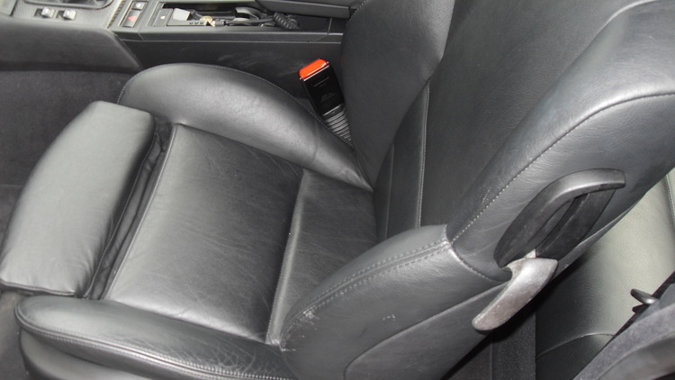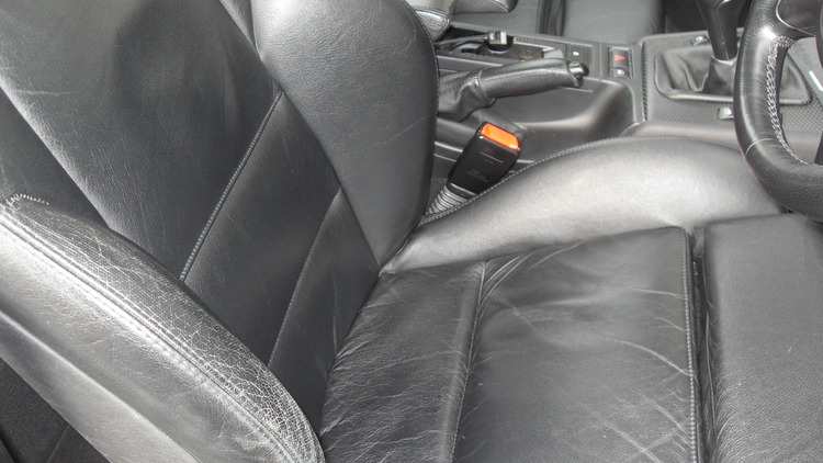 Black BMW 330ci, full black leather seats, all in good condition apart from age related wear on drivers side bolster, not ripped or torn. Rare carbon fibre trim.