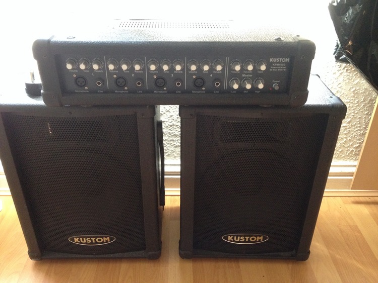 A Kustom bundle speakers,amp, microphones + leeds! Very good basicually brand new! Also sick for house partys!