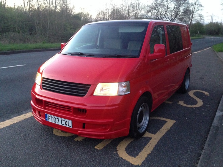 Vw t5 2007 ,2.5 diesel ,6 speed ,140k ,red black roof,fully colour coded front sportline spoiler ,rear roof spoilers ,debadged grill with modified bonnet,full coilover suspension ,banded steel wheels 9.5" rear 8.5"front new tyres, mk6 golf steering wheel,rear of van fully carpeted out in charcoal anthrasite carpet ,black glitter altro flooring ,taxed end may ,12 months mot ,full service history,full hpi report ,stunning condition possible part x taken