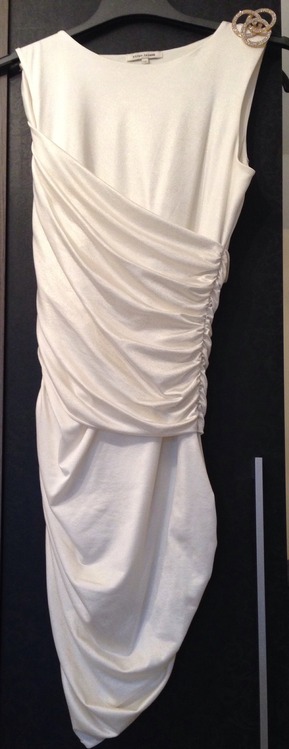 Worn once in excellent condition! Says size 12 but small fitting so will fit size 10. Comes with detachable brooch! Cream with gold shimmer !