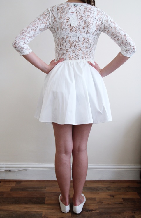 White 3/4 Sleeve Lace Skater Dress M