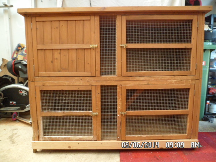 1 rabbit hutch for sell, in fair condition. nice and sturdy, back of hutch has been done with fencing wood to give it more support and also abit more water proof. the only things wrong with the hutch is 1 door need the hinge replacing, also wood near doors, where rabbits chewed it. also stairs might need replacing but they work fine the rabbits can still use them. (the hutch is heavy and doe's nt dismantle, collection only)