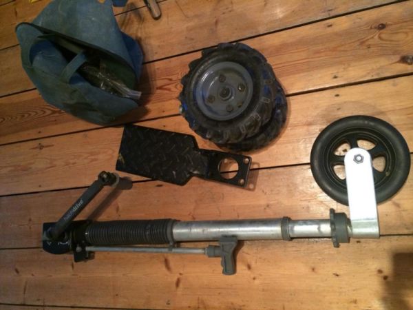 Attaches where jockey wheel is and enables you to move