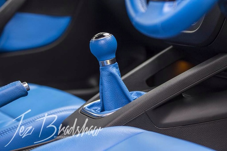 Full Edgeautomotive retrim in blue leather including; seats front and rear, arm rest, door cards, steering wheel, handbrake handle, gear knob and gaiter. Nearly brand new MK6 Golf genuine matts, only used for show use no marks or wear.