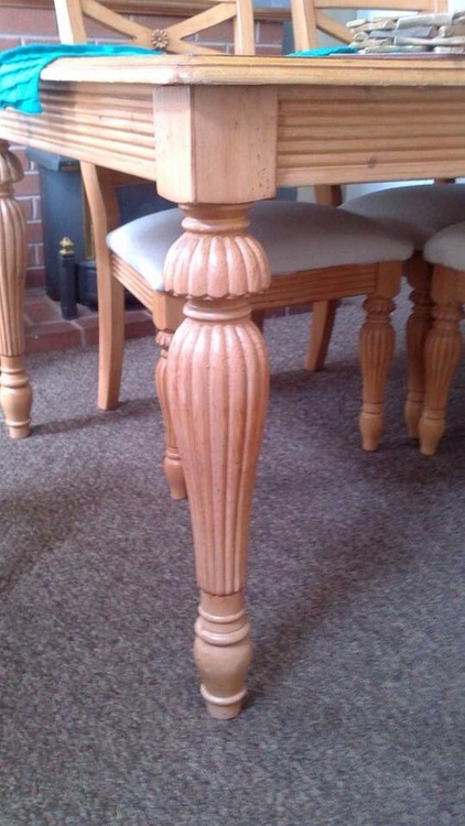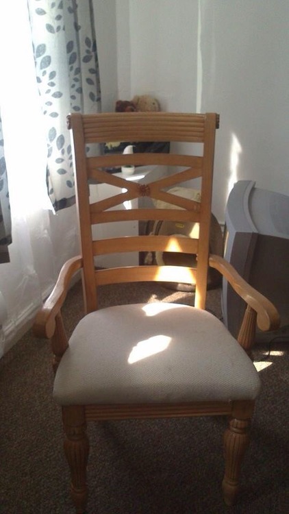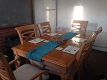 Dining room table with 6 chairs two of the chairs have arms and the other 4 do not, photos are avalible would like £150 Ono, the table also extends there is a photo of the middle panel