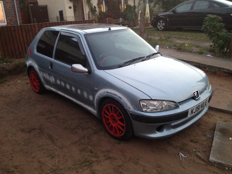 Hi I am selling a Peugeot 106 1.1 4point manifold 0Z 16 inch wheels checked rally seats half show cage stearing wheel with boss kit tinted windows m o t till next May tax till end of October bad bits needs spraying where the arches have been fibre glassed and drivers seat needs welding any more q's 07774 859115 xx