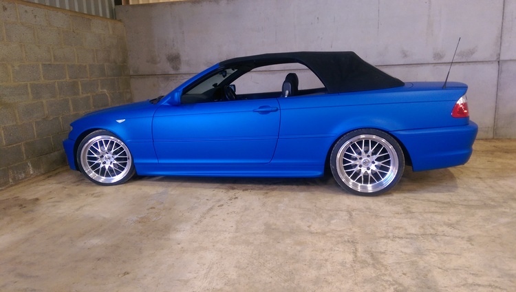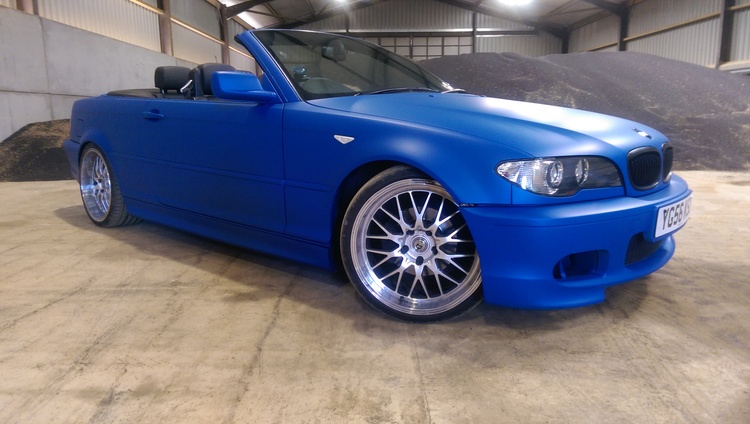 The blue is a matt finish with a slight pearl as you can see in the pics. Its custom made by me so you will never see another car this colour. If you don’t like it the Plastidip can be peeled off to reveal the excellent black paintwork underneath.