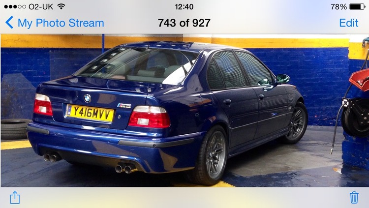 The car as got an extensive service history to say it's been dry stored most of the time. The car had three new tyres two continental and one Michelin I was desperate due to puncture near sidewall but couldn't get hold of another conti,new brakes all round the start of this year,new bosh battery,oil and filers and diff oil replaced all with the correct stuff, vanos units are perfect no horrible noises from them and gear box is bang on and no sloppy gear selector as you would expect from a car with so little milage. So all in all this is a super low Miliage fully loaded M5 in the best colour. Sadly car was cat d in 2004 but only panel damage and as been repaired 10years ago now if you want any details call me 07568553304 maybe interested in a nice diesel car if any1 wants to swap. Private plate is not included in sale car will return back to Y416 MVV