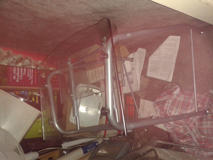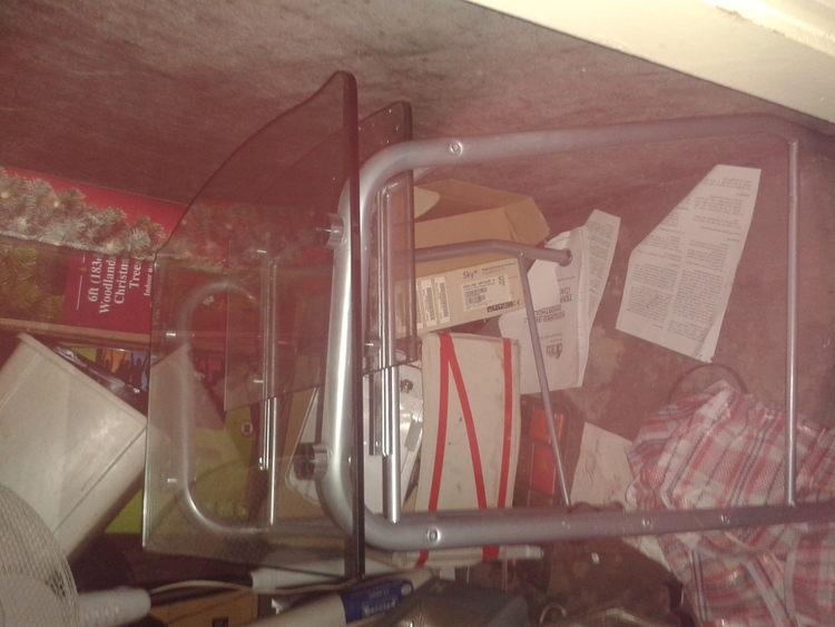 Glass desk with metal legs and sliding shelf underneath. Just in shed so pics not clever
