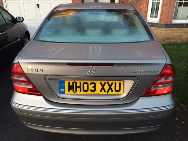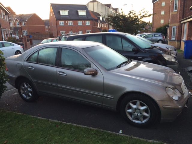 Mercedes c180 Kompressor Elegance SE Auto 2003, No service history, No Tax, MOT due on 10 Oct 2015,Automatic Headlights, Electric windows, Air conditioning, CD player, Height adjustable driver's seat, Height adjustable passenger seat, Metallic paint, Alloy wheels, Power steering, Steering wheel rake adjustment, Steering wheel reach adjustment, Cruise control, Traction control, Central locking, Alarm, Immobiliser, Driver's airbags, Side airbags, Passenger airbags, has a small dent and scratch and cracked indicator lens on the nearside front door hence the price, vehicle is sold as seen