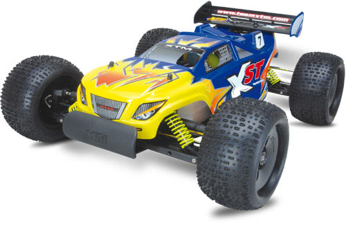 The XST 4WD Truggy RTR is a purpose built truck designed to handle any terrain it encounters. With 4mm thick aluminium shock towers, threaded aluminium oil filled shocks with 3.5mm diameter shock shafts, chrome plated front universals and a 3mm thick aluminium chassis. The XST 4WD Truggy RTR is ready for backyard bashing or the next trip to your local track. Rest assured that the XST will perform with tough 5mm aluminium braces that support the front and rear gearboxes, a mega high torque metal-geared steering servo and steel drivetrain. With its stock wheelbase and steering geometry, the XST 4WD Truggy RTR will make it through the tightest turns of the track with ease!