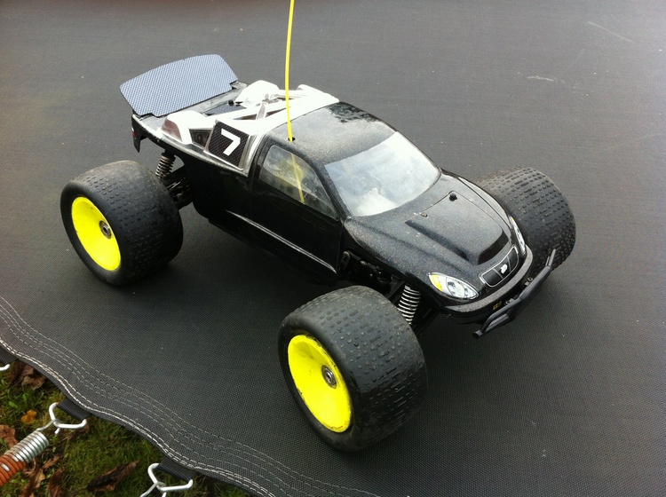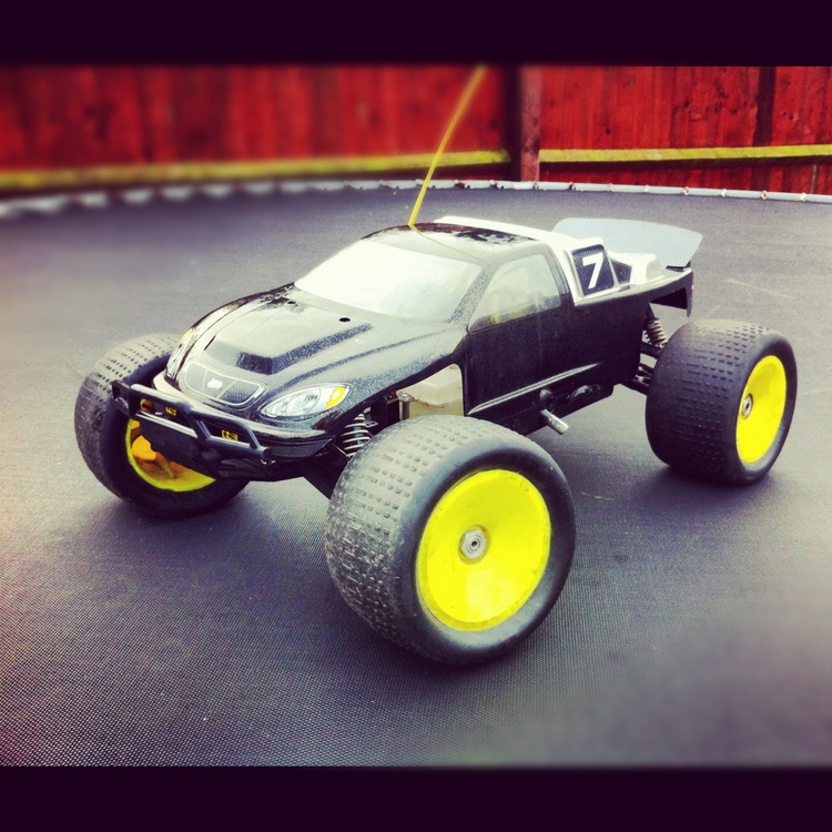 Radio controlled nitro monster truck, 2speed very quick, around 50-60mph, runs great and lots of fun, loves wheel spins burnouts donuts etc, out runs most other rc cars.
