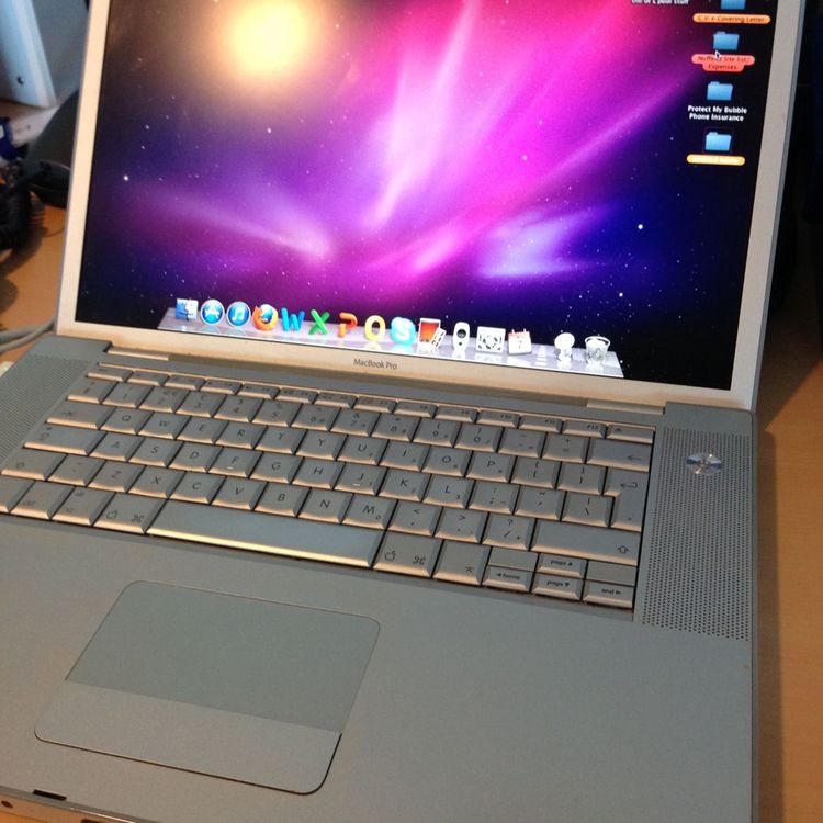 MacBook Pro from 2008. Running on Mountain Lion. Not bad condition considering age. Cosmetic scratches. Needs new battery and c.d drive.