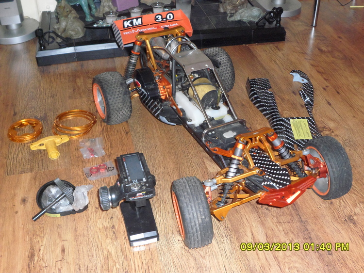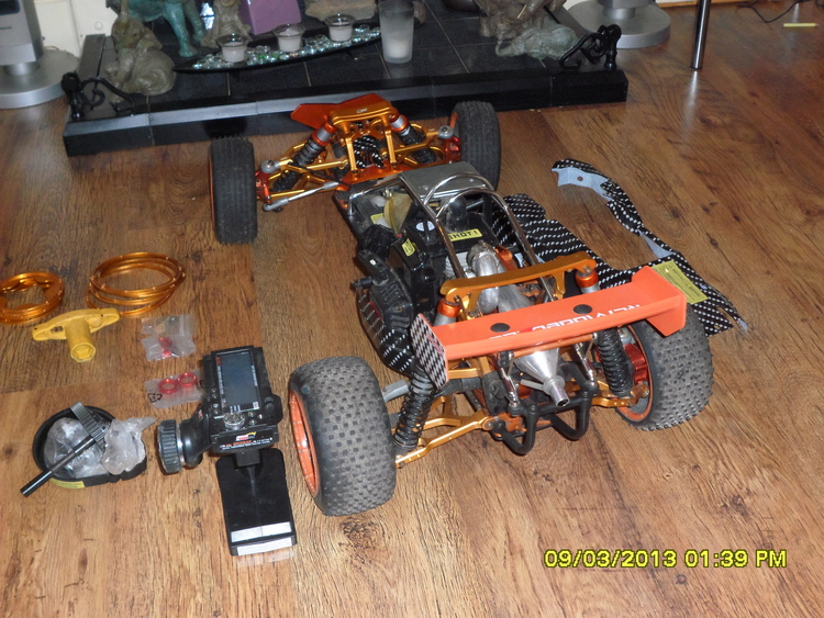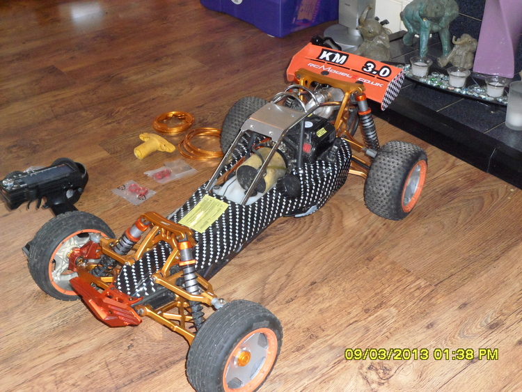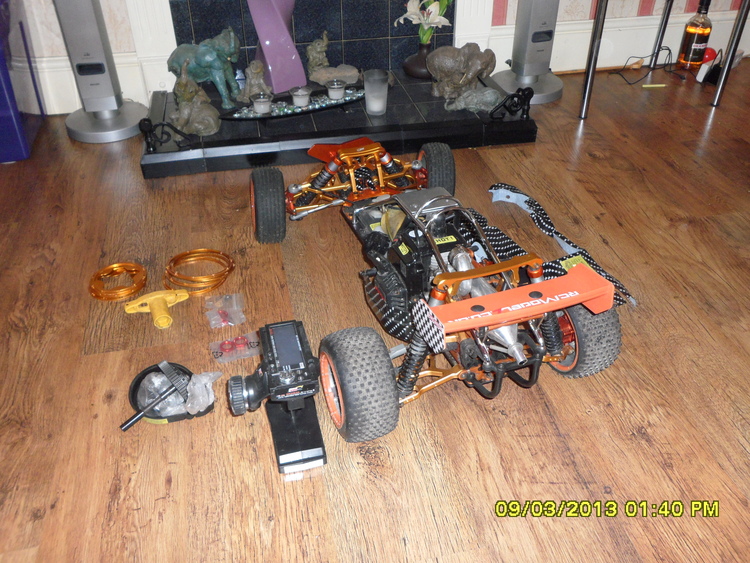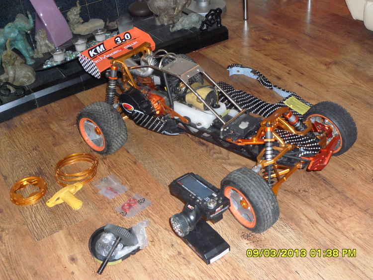 rc car 1/5 scale petrol not nitro 30cc engine, 2 speed gearbox all aluminium upgrades very fast, excellent condition with spares