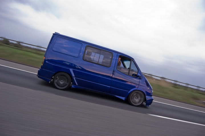 5 linked rear syspension fully adjustable, turreted with gaz racing shocks (platform adjustable) poly bushed all round with M20 rosejoints, front legs top adjustable & platorm adjustable custom made by Gaz. lowered all round by 7-8". Don`t confuse this with a lowered transit, with this expensive setup it handles very, very well