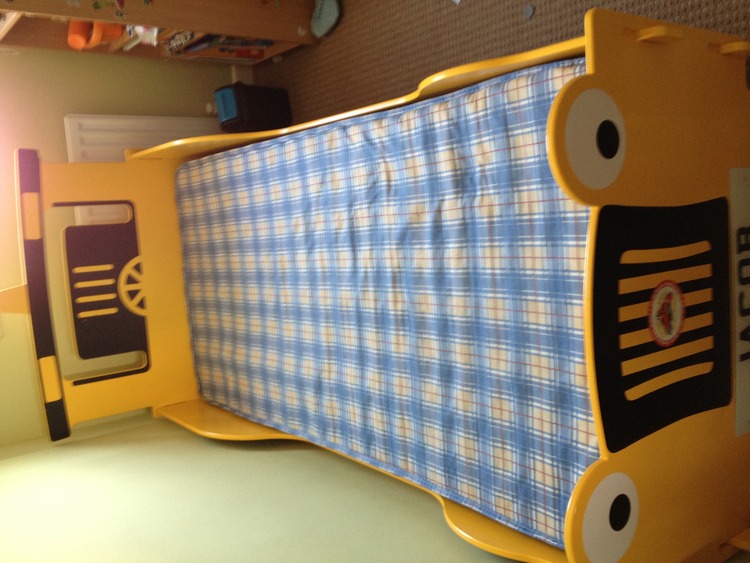 Kidsaw digger single bed for kids....+ mattress (90x190cm) like new. Bed was cracked(my little one jumped on it) underneath but is fixed. Nothing wrong with it at all. Just moving the house. Need a smaller bed now. Front part(spoon:scoop) never been used...still in wrapping foil. Perfect bed for a boy;)))))