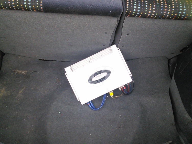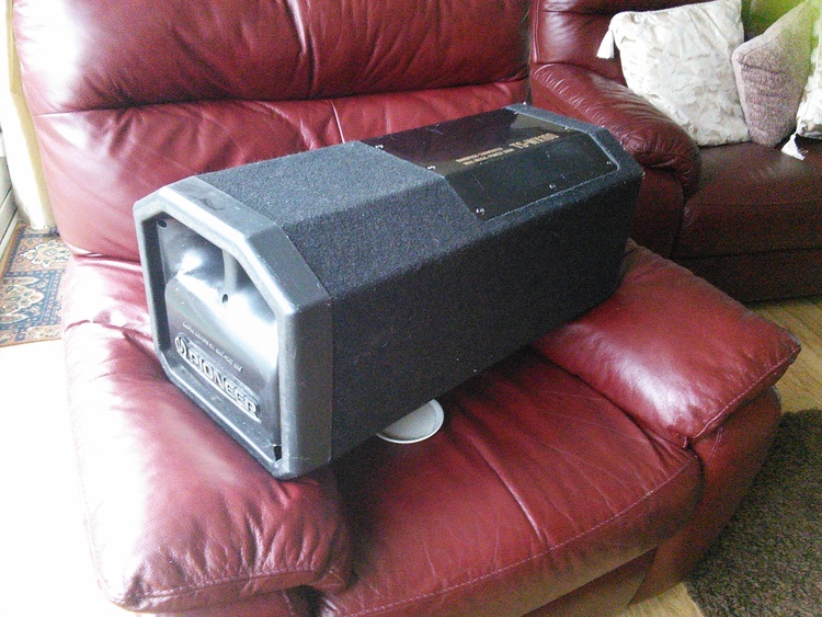 Pioneer bandpass sub with a genesis profile sub amp including wiring kit. Good used condition and sounds awesome! Much better sound than a ported or sealed box.