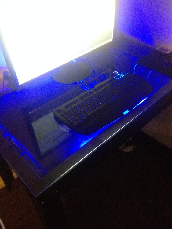 i have a custom built gaming pc that am looking to trade for another gaming rig of sort it is inside of custom built aluminium desk specs as follows:-