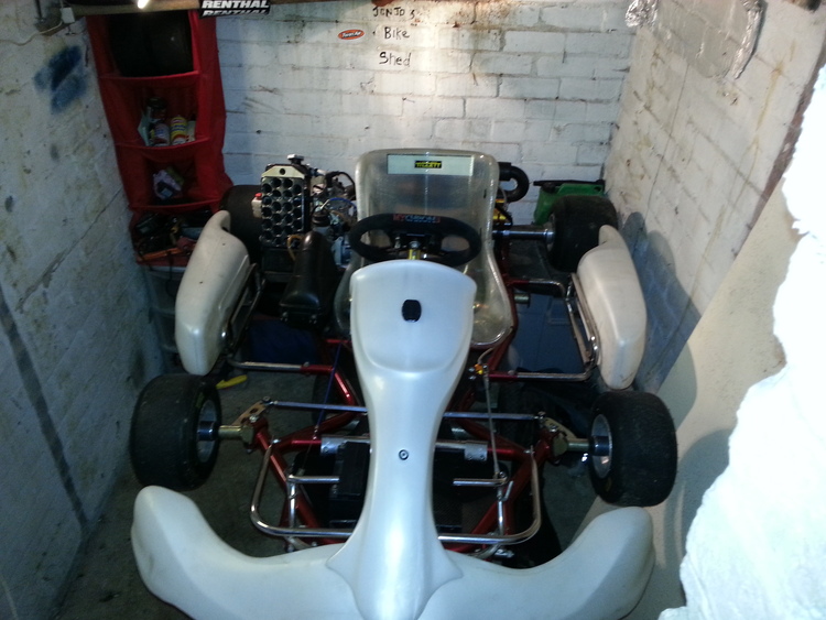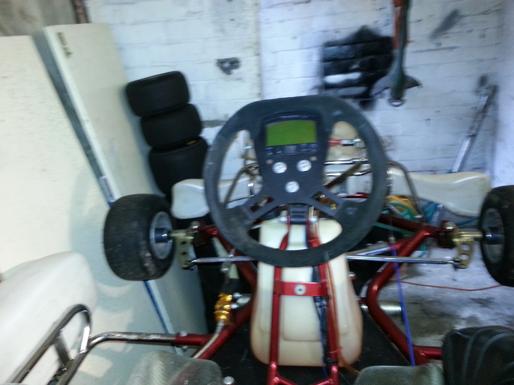 very clean very fast kart will do around 80mph comes with mychron 3 rev counter lap timer /new style air box/ quick release bumper s fornt snd back electric start /starts first time every time come with nice looking brakes in gold come with loads of bits dynamic laser wheel alignment system loads of tyres.wet wheels x1 dry wheels x3 sets loads of little bit s cables brake pads full race suit helmet rib protector gloves balaclava pit trolley battery charger the kart is im mint condition