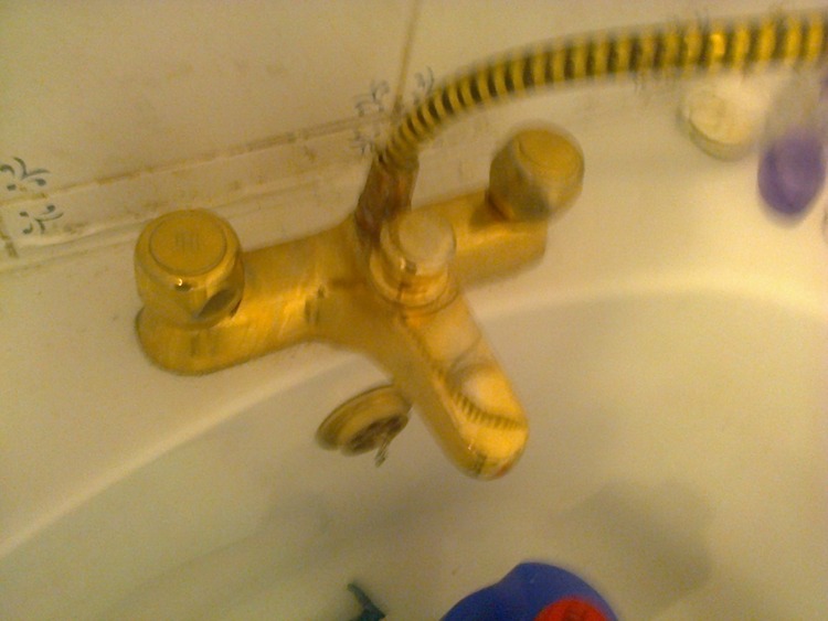 Gold Bath mixer/shower taps c/w hose and shower head