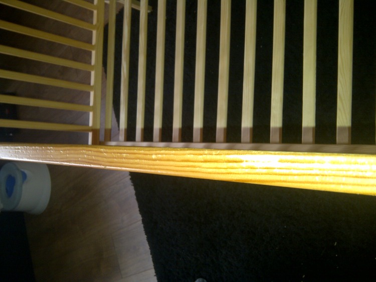 Kiddicare midi cot frame, no matress, 2 of the bars have been bitten on from when my toddler was teething when he was 9month old. Please look in pictures before collecting. Pick up only as I don't drive. 2 differant levels to raise the bottom frame where the child sleeps. Cot bumper to go with cot frame.