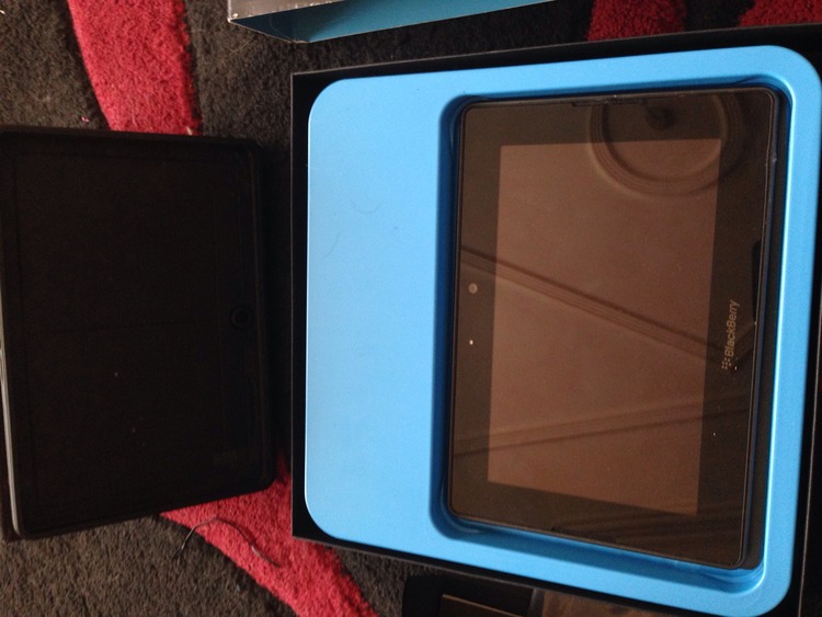 A grade b blackberry tablet/playbook with case and all accessories Charger Headphones Screen wiper Manual Original box