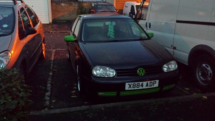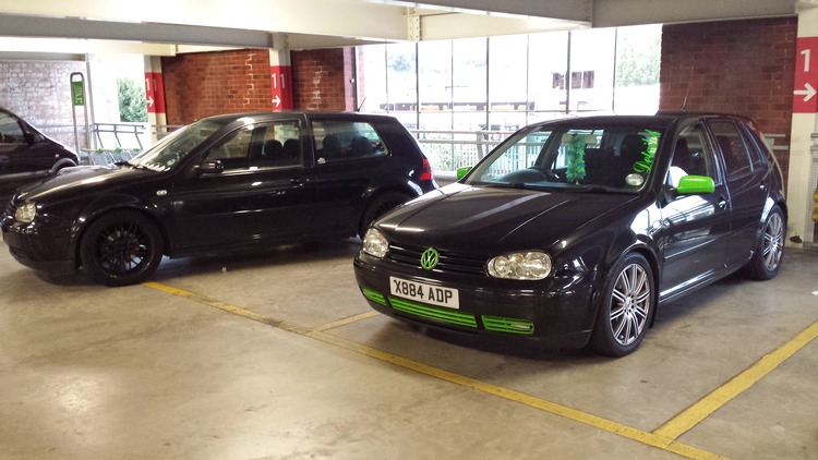 here we have my golf turbo gti up for grabs, she been remapped, performance exhaust system, upgraded dump valve, magic black with lime green mirrors, grills and badges, very reliable never let me down, she sits low on coil overs, upgraded front anti roll bar for clearance, adjustable drop link arms, upgraded poly bushed engine mount, shes all solid and tight as it should be, being a mechanic all servicing was done by me, platinum plugs, uprated coil packs, manual boost control valve fitted, comes with front and back spare bumpers, shes pushing 246 bhp at the wheels.