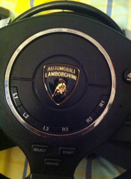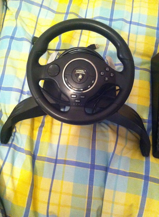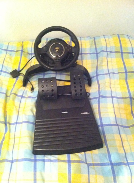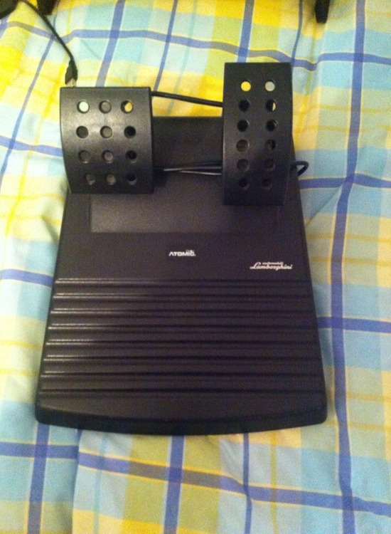 Atomic Lamborghini racing wheel with pedals.