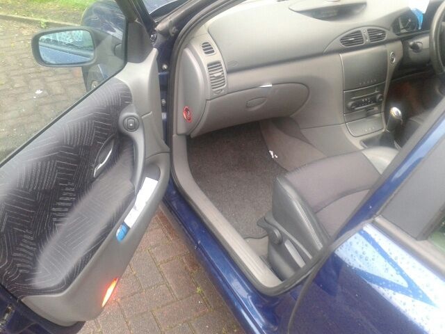 Blue Renault Laguna. 1.6 16V 5 doors, electric fully opening sun roof, CD player, all 4 electric windows, part leather interior, card key with button ignition, arm rests and cup holders front and back, 3 over chest seat belts in back, lights on bottom of inside of doors and much more. Mot and 6 months tax. Been told the alloys worth 200 alone. Great car easy to drive gears smooth. Had new oil and alternator.