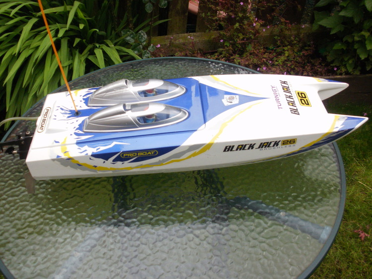 hi for a swap is a pro blackjack brushless racing boat it comes 50mph out of the box very fast boat i have 3 lipos batterys 2 turnigy 50000 mah 1 40000 mah its new i think one of the turnigy is not right good the boats 30 inc long 9 inc wide made of fiberglass 60 amp water cooled speedcontroler brushless water cooled moter a3630 turn fins fitted its a nice boat very fast and the cost with out lipos was £320 its fitted with fail safe aswell comes with chager for lipos hand set all work fine any info email me thanks d