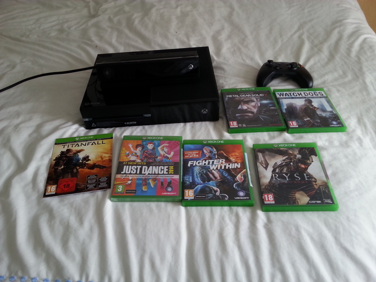 Xbox one 500GB One controller Games include: Titanfall (already downloaded) Just dance Fighter within Watchdogs (limited edition) Metal Gear Solid Ryse son of rome