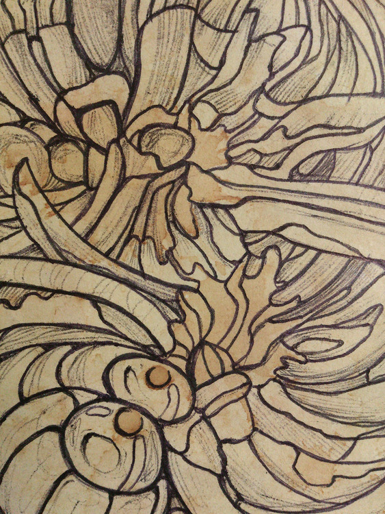 Medias: paper painted with black tea/ black pen.