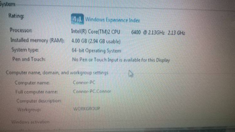 I have a PC Tower, With a wireless keyboard and mouse. It is a Intel Core 2.13ghz, 4gb Ram! 64 Bit Operating System. The overall Rating is 4.1 Rating! Gaming graphics is 5.8 score. Good for running PC Games. Wanting to swap for a Laptop, or another Desktop PC with good graphics!