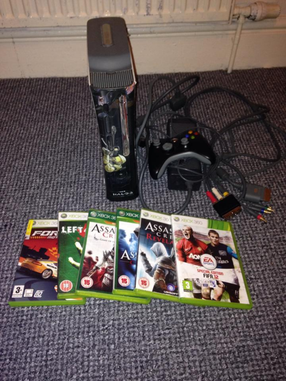 XBOX 360 WITH A 120GB HARDRIVE WITH IT AND GAMES NOT GOT ORIGINAL PAD WITH IT AND HAVENT GOT THE BOX FOR IT BUT EVERYTHING ELSE IS WITH IT.