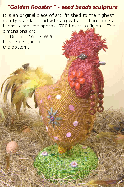 "Golden Rooster" - Seed Beads Sculpture