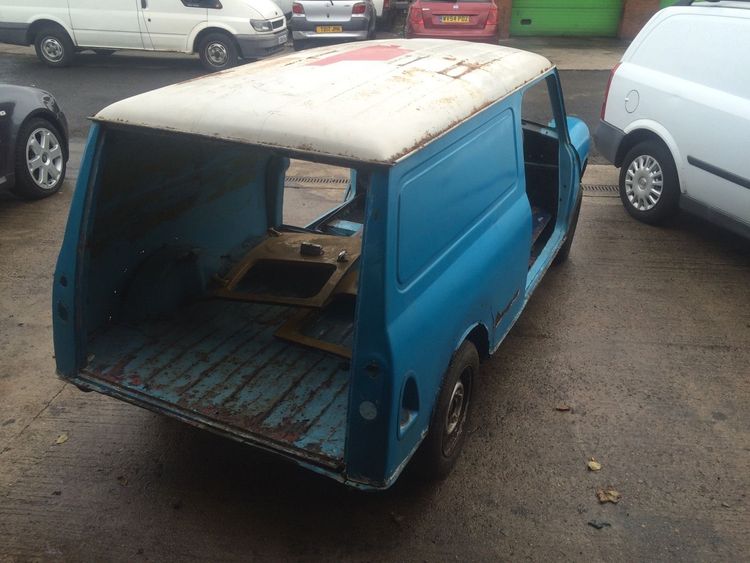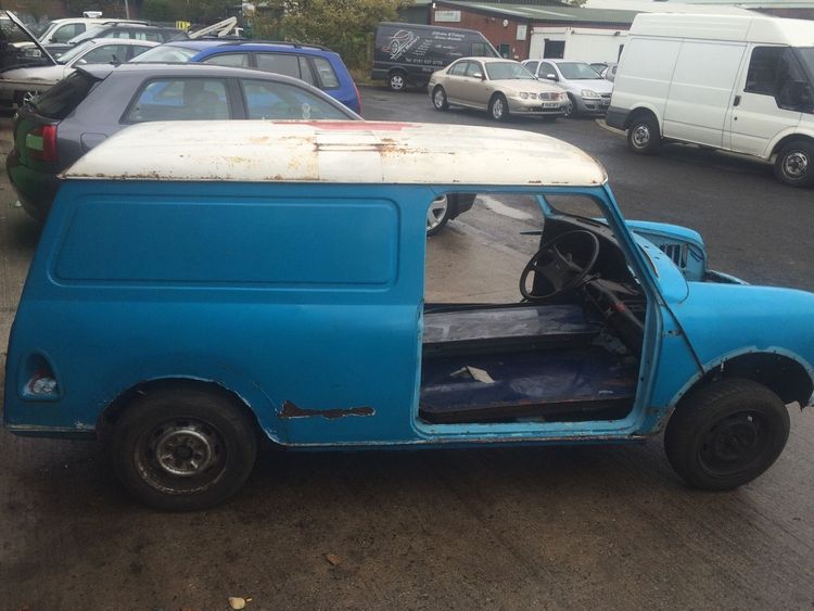 Here we have a classic mini van in need of a restoration its in fairly good condition with the usal places inc floors, suplied with the van is 2 rear doors, 2 front mk1 doors need reskining and a brand new bonnet and also 2 brand new full floor pans with out sills. Worth over £100 a side. Its a rolling shell with front and rear subframes on but need looking at. This does not come with an engine or box. This is just a empty rolling shell. What you see is what you get as wel with the bits ive mentioned. Any more info please call tom on 07792232834 NO V5
