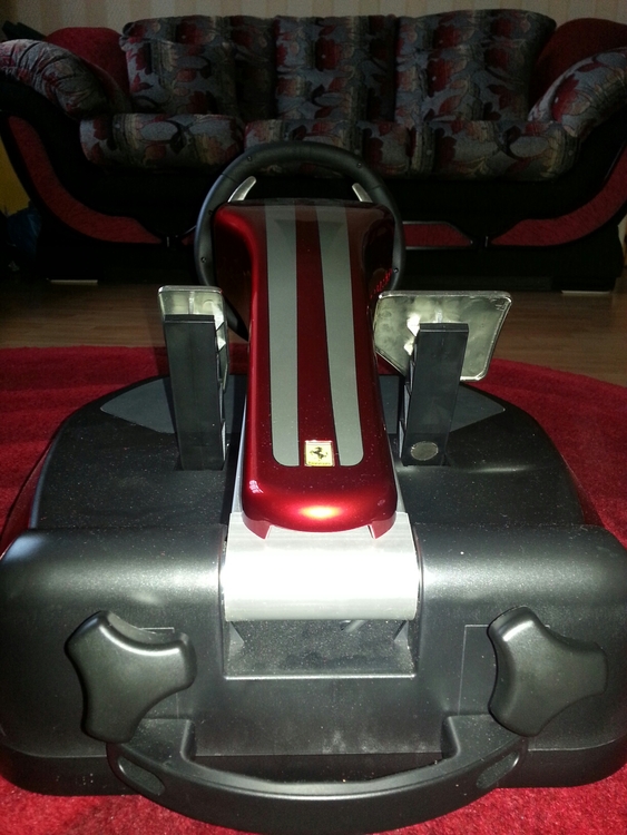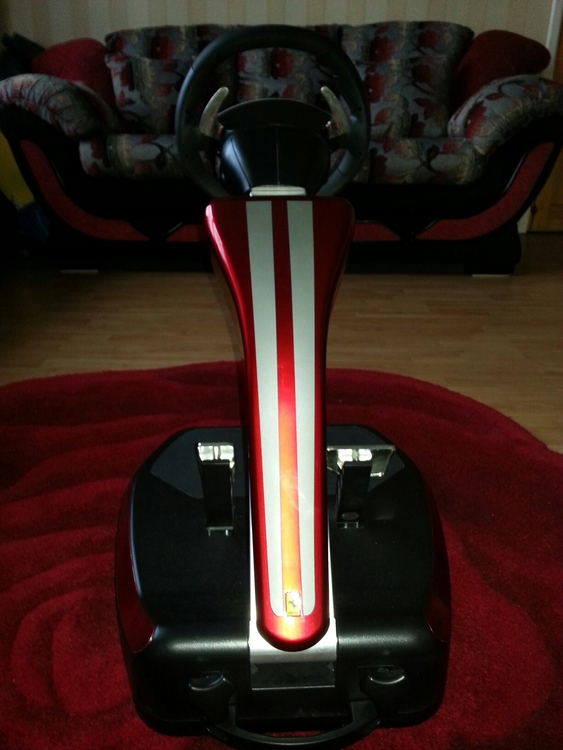 This is the Thrustmaster F430 Cockpit. This includes the steering wheel and pedals on an adjustable stand.